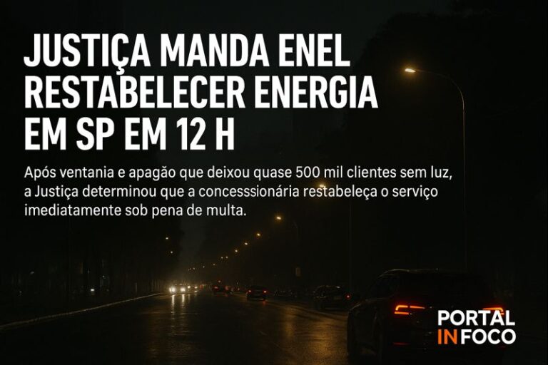 A Justiça de São Paulo determinou no fim de sexta-feira (12/12/2025) que a Enel restabeleça a energia elétrica em até 12 horas para consumidores afetados na capital e na região metropolitana, após o apagão provocado pela ventania de quarta (10/12), sob pena de multa de R$ 200 mil por hora em caso de descumprimento.